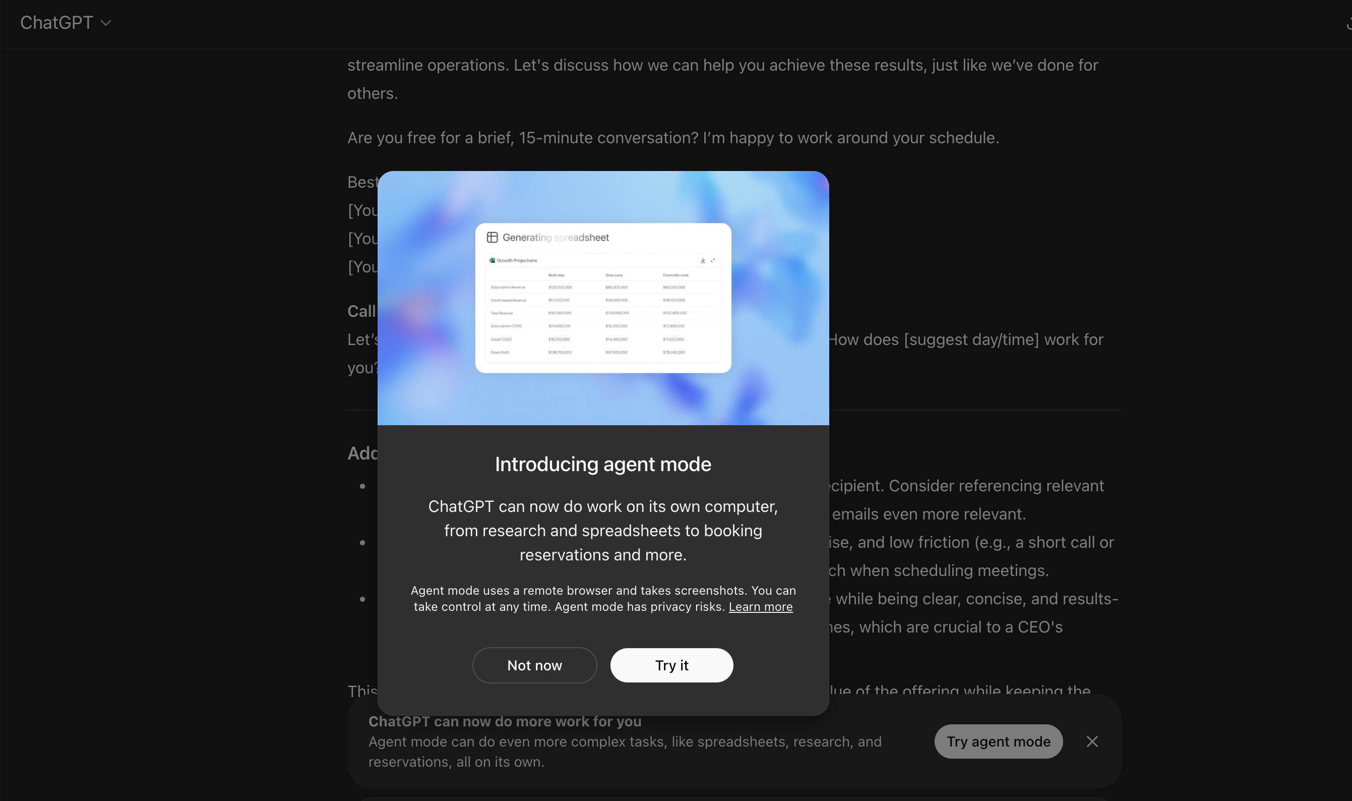 If you’ve ever used ChatGPT’s free tier, chances are you’ve seen one of those clean, subtle, yet compelling little popups inviting you to “Try GPT-4” or “Upgrade to Plus.” These aren’t just random nudges—they’re high-converting, in-product upsell strategies designed to meet users in the moment of peak curiosity or friction.